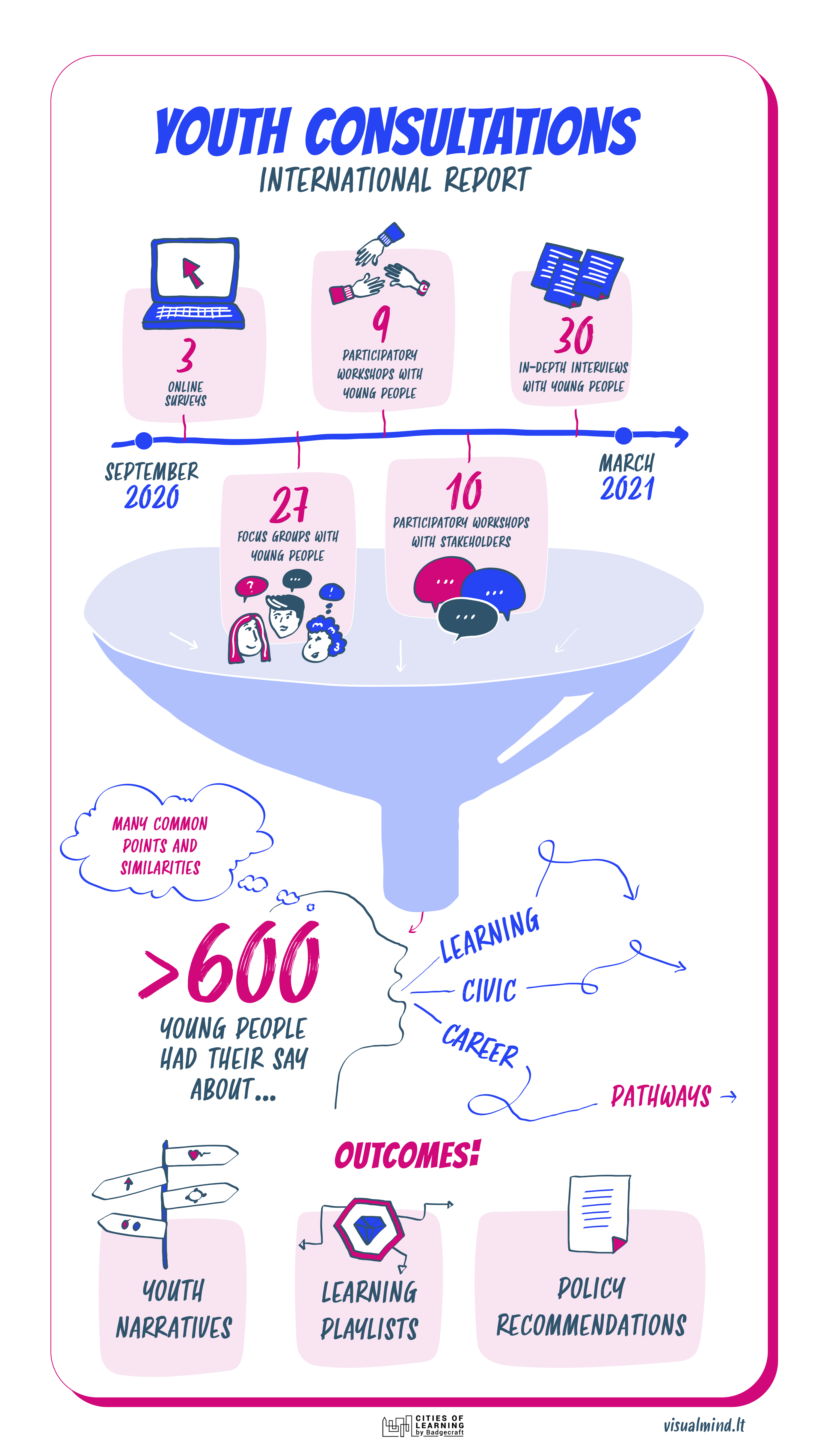 Below is a summary of youth consultations results and outcomes collected during the "Cities of Learning: youth co-design learning, civic and career pathways" partnership.