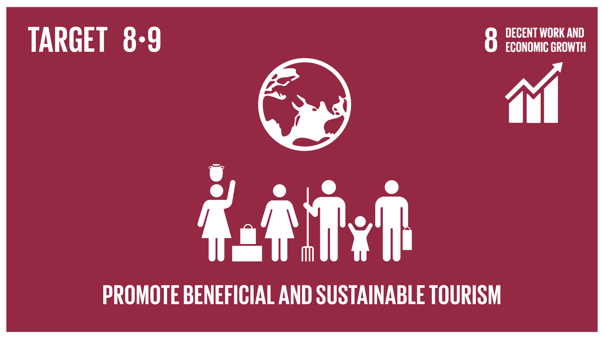 8.9 Tegen 2030 beleidslijnen uitwerken en implementeren ter ondersteuning van het duurzaam toerisme dat jobs creëert en plaatselijke cultuur en producten bevordert.