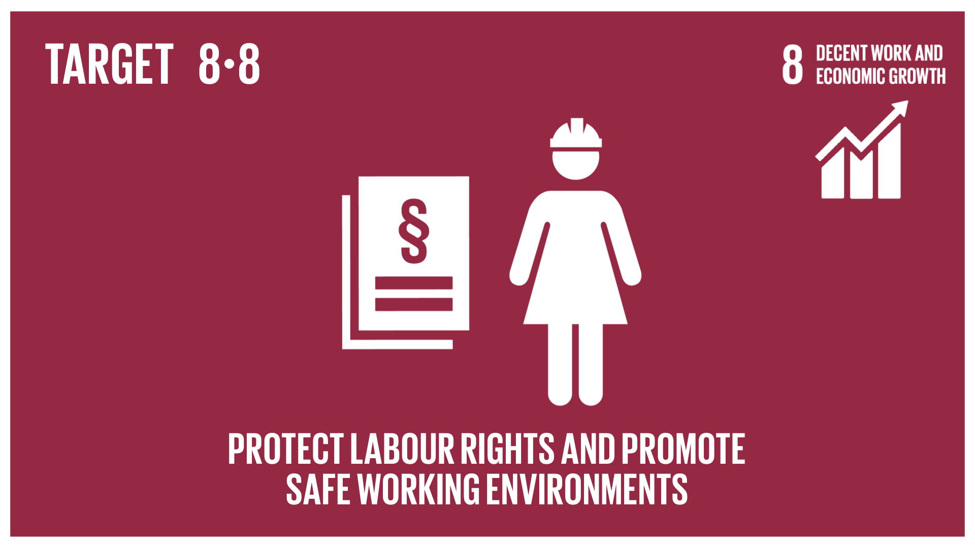 8.8 De arbeidsrechten beschermen en veilige en gezonde werkomgevingen bevorderen voor alle werknemers, met inbegrip van migrantenarbeiders, in het bijzonder vrouwelijke migranten, en zij die zich in precaire werkomstandigheden bevinden.