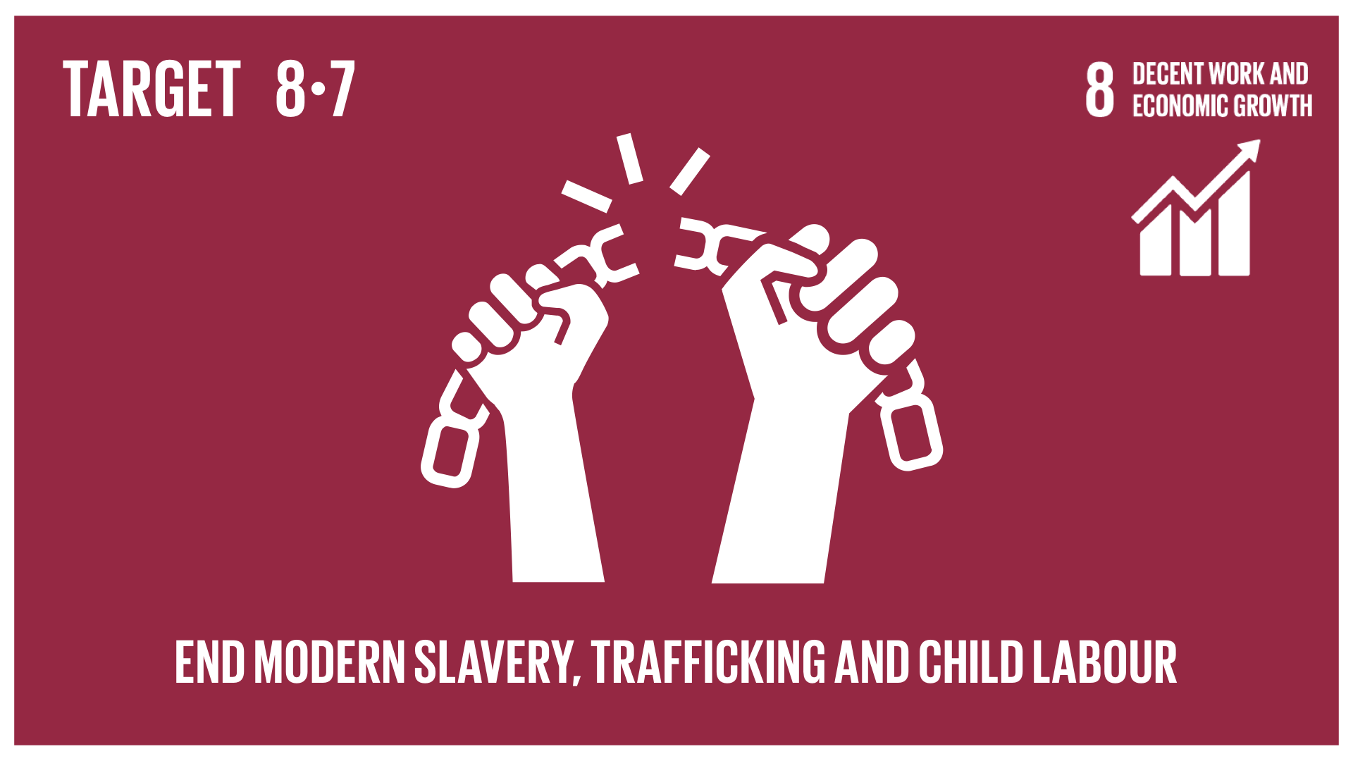8.7 Onmiddellijke en effectieve maatregelen nemen om gedwongen arbeid uit de wereld te helpen, een einde te maken aan moderne slavernij en mensensmokkel en het verbod en de afschaffing van de ergste vormen van kinderarbeid veiligstellen, met inbegrip van het rekruteren en inzetten van kindsoldaten, en tegen 2025 een einde stellen aan kinderarbeid in al haar vormen.