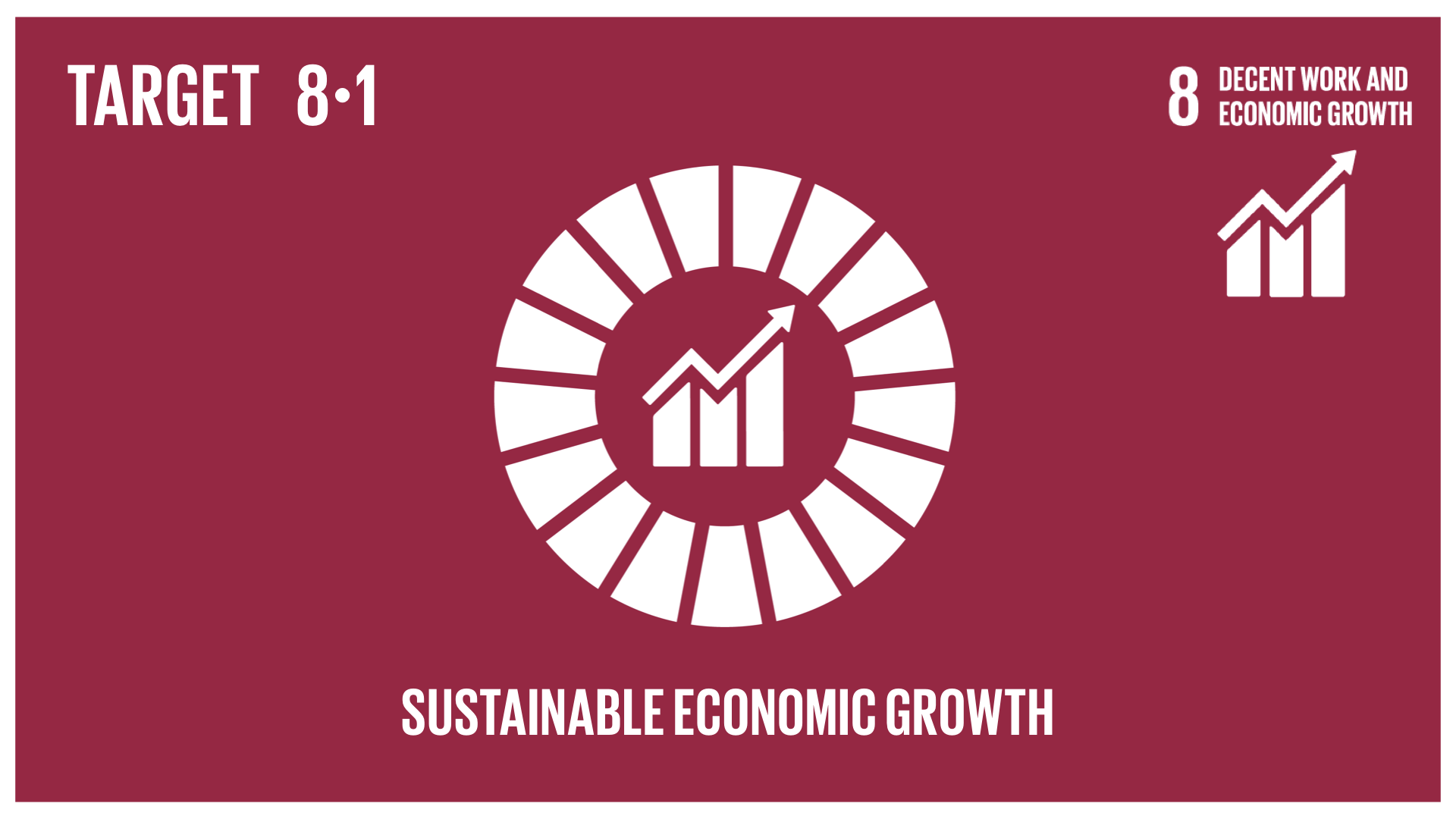 8.1 De economische groei per capita in stand houden in overeenstemming met de nationale omstandigheden en, in het bijzonder, minstens 7% aangroei van het bruto binnenlands product per jaar in de minst ontwikkelde landen.