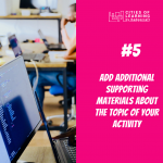 - Add additional supporting materials about the topic of your activity to inspire participants. E.g. include an attractive youtube video that your participants will like.