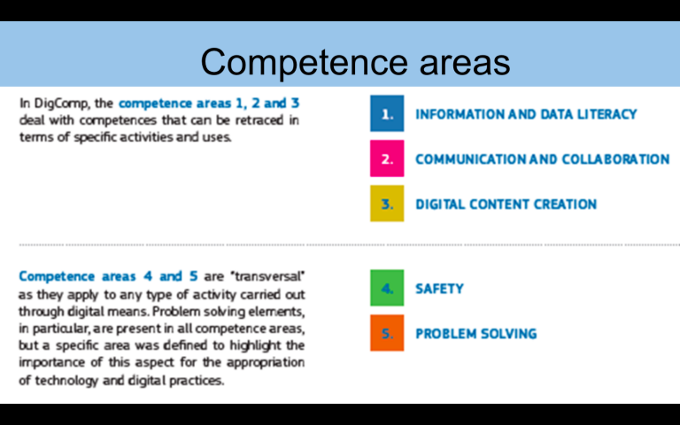 - Exploring the concept of DigComp 2.1 with Henry Uithaler (structure, content, competence areas and competencies, proficiency levels, dimensions) (from 5:21)